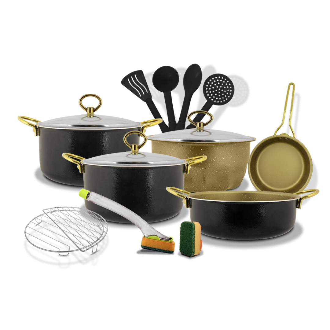 خرید این محصول میتواند شما را برای مدتی طولانی از خرید هرگونه محصول دیگری بینیاز کند. با توجه به کیفیت و زیبایی این سرویس 15 پارچه گلدن گرانیت که هر خانم خانه داری باید در ویترین آشپزخانه خود یکی از آنها را داشته باشد، دیگر احتیاجی به خرید دیگر محصولات نیست. زیرا از این قابلمهها و تابهها میتوان برای پخت انواع غذاها و خورشتها استفاده کرد، بدون اینکه کوچکترین مشکلی برای آنها پیش بیاید.